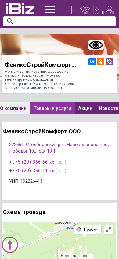 | Название / Заголовок | ФениксСтройКомфорт ООО - Монтаж вентилируемых фасадов из металлических кассет. Монтаж вентилируемых фасадов из керамогранита. Монтаж вентилируемых фасадов из композитных кассет. . 222661, , Новоколосово пос., Победы, 10Б, оф. 10Н |