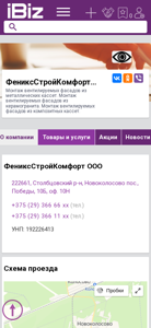 | AI-анализ | The portal is a business website for FenixStryoComfort OOO, a construction company offering the installation of ventilated facades using metal, ceramogranite, and composite cassettes. The website provides contact information, including two phone numbers and the company's address in the Sтолбцовский r-n, Новоколосово pos., Победы, 10Б, оф. 10Н location. The website also includes information on business hours, which are Monday through Friday from 9:00am to 6:00pm without lunch breaks. Additionally, the website features a map for easy access to the company's location and a public agreement for users. The website is categorized under construction and construction services, as well as other relevant categories. |