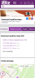 | AI-анализ | --- The portal elektrosts.ibiz.by is a business-to-business platform for ElectroStoySystema OOO, a company based in Stolbцы, Belarus, offering electroinstallation services and equipment rental. The website provides a scheme for reaching the company, as well as contact information including three phone numbers. The company's Unified State Register number is 691082440. The portal includes sections for company information, products and services, news, job vacancies, and customer reviews on various social media platforms. The business operates from Monday to Friday, 9:00 AM to 6:00 PM without lunch breaks. The website also features a statistics section and a contact form. The company is listed under the categories of Electroinstallation Services and Electroinstallation Services in Stolbцы. |