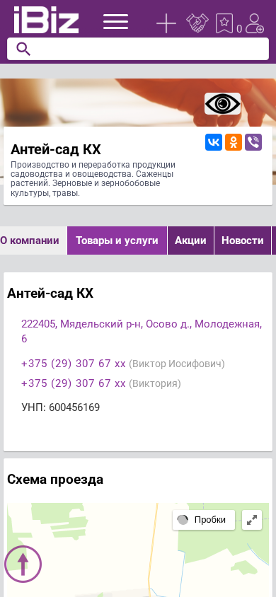 | Название / Заголовок | Антей-сад КХ - Производство и переработка продукции садоводства и овощеводства. Саженцы растений. Зерновые и зернобобовые культуры, травы.. 222405, , Осово д., Молодежная, 6 |