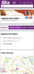 | AI-анализ | The web project "МЯДЕЛЬСКОЕ РАЙПО" is a real estate company based in Мядель, Belarus, located at Шаранговича, 2. The website offers various real estate services, including sales and rentals, appraisals, and auctions. Users can browse through listings, add them to their favorites, and contact the company via phone number +375 (1797) 4 01 xx. The company's UNP number is 600057482. The website also provides a map and directions to the company's location. Business hours are from Monday to Friday, 08:00 to 17:00, with no lunch break. The company is listed under the "Real Estate - Sales, Rentals, Appraisals" category in Belarus |