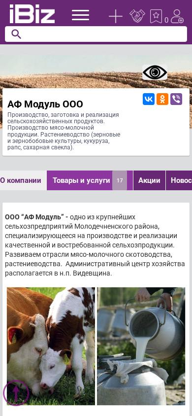 | AI-анализ | The online resource "AF Modul OOO" is a Belarusian agricultural company that specializes in the production, procurement, and sale of agricultural products. The company produces meat and dairy products, as well as engages in crop farming, including cereals and legumes, corn, rapeseed, and sugar beets. The administrative center of the company is located in the village of Videvschina. The main areas of activity for AF Modul OOO include the production of meat and dairy products, the cultivation of cereals, the cultivation of legumes, corn cultivation, rapeseed cultivation, and sugar beet cultivation. The primary source of revenue for the agricultural company is the sale of milk. The agricultural sector also grows and collects fodder crops. The company's transportation fleet, repair workshops, livestock farms, including dairy and cattle farms, are |