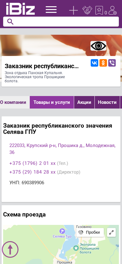| AI-анализ | This website is for a nature reserve of republican significance named Selava GPU - Pansky Kupalnia, located in Minsk region, Proshika village, Molodezhna. It features an ecological trail called Proshicki Bолоta. The website provides a map for visitors, contact information for the company Selava GPU, and details about opening hours, which are from 9:00 to 18:00, Monday to Saturday, with Sundays being a day off. The company registration number is 690389906. |
