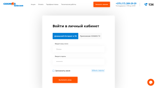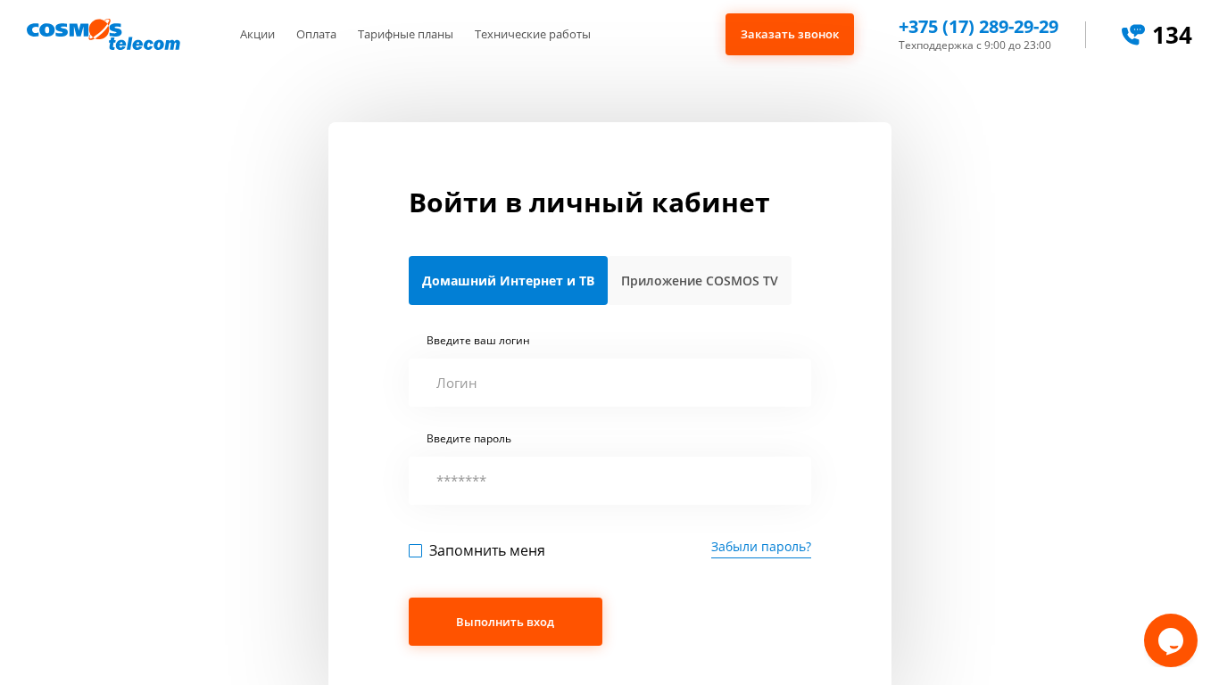 | SEO-описание | Личный кабинет абонентов КОСМОС Телеком для управления услугами домашнего Интернета и телевидения. Управление договором и тарифным планом |