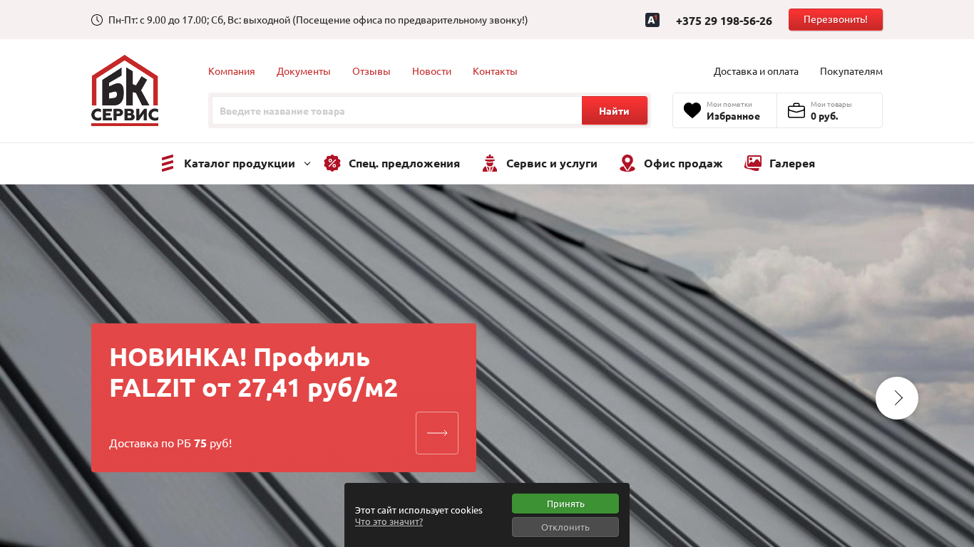 | Название / Заголовок | БК-сервис все для кровли, забора и фасада. Низкие цены, доставка по РБ, рассрочка и кредит. |
