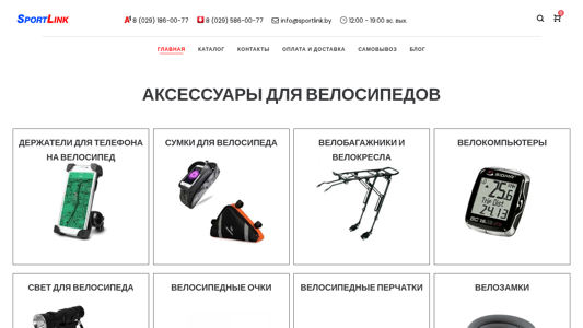 | AI-анализ | The website is an e-commerce platform selling bicycle accessories and parts with a large inventory at low prices, offering delivery in Minsk and all of Belarus. The website title is 'Аксессуары для велосипеда купить в Минске | Sportlink.by' and the description includes 'Огромный выбор аксессуаров и запчастей для велосипедов' and 'в нашем интернет-магазине'. Keywords consist of terms related to bicycles, Sportlink, purchasing, rubles, velospeed parts, and accessories. The website contains links to contacts, a shopping cart, and order tracking. The domain is sportlink.by. |