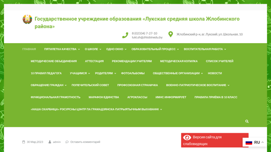 | AI-анализ | The web project "Лукская средняя школа Жлобинского района" (Luki.sh.zhlobinedu.by) is an educational institution website in Belarus, specifically for "Лукская средняя школа Жлобинского района" (Lukskaya Srednya Shkola Zhlobinskogo Raiona), which translates to "Lukskaya Middle School of Zhlobin District." The site provides information on the school's schedule, administration, policies on personal data and information security, and various educational programs. Keywords associated with the site include "образования" (education), "школа" (school), "жлобинского" (Zhlobin District), "график" (schedule), "расписание" (schedule), and "информирует" ( |
