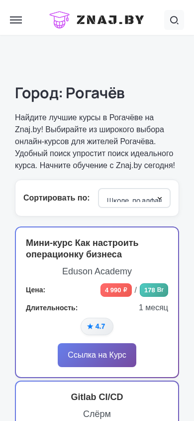 | Название / Заголовок | Онлайн Курсы Рогачёв - Znaj.by |