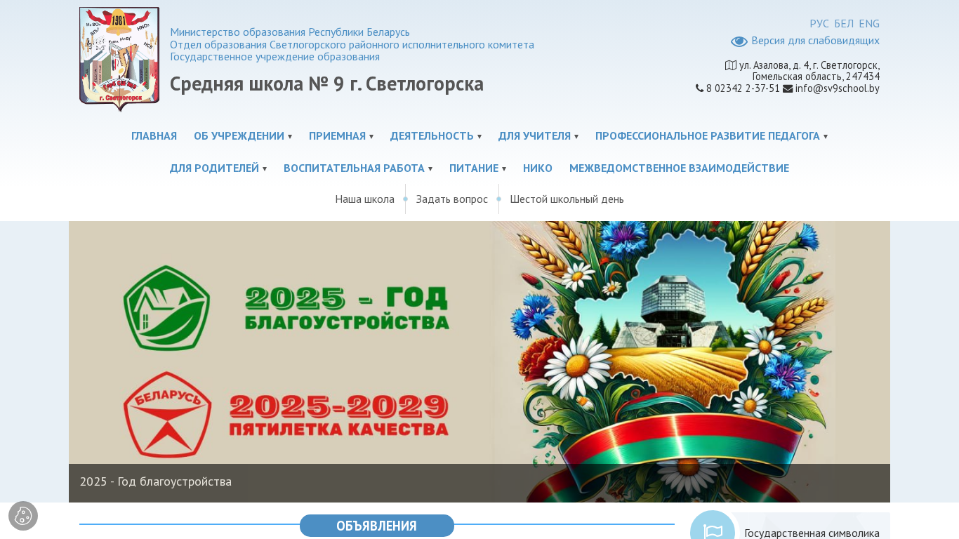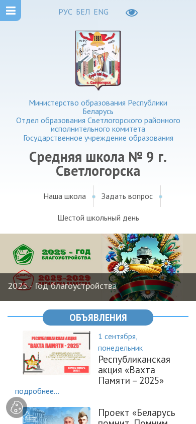 | Название / Заголовок | Средняя школа № 9 г. Светлогорска |