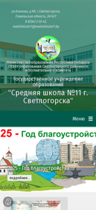 | AI-анализ | This online resource is the official website of Middle School No. 11 in Svetlogorsk, Belarus. It provides comprehensive information about the school, including its location on Azaлова Street, its administrative contacts, and its schedule of classes and extracurricular activities. The site also features sections on school policies, news, and various educational resources. Keywords associated with the site include "school," "schedule," "information," and "Svetlogorsk," among others. The site's top words are "работы" (works) and "подробнее" (more details), indicating a focus on practical information and in-depth coverage of the school's offerings. The site is operated by the Ministry of Education of the Republic of Belarus and the Svetlogorsk District Executive Committee. It includes sections on the school's history, its various departments and organizations, and |