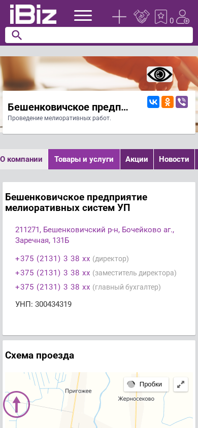 | AI-анализ | The portal is a business website for Бешенковичское предприятие мелиоративных систем УП (Бешенкович Company for Meliorative Systems and Works), located in the village of Бочейково аг., at Заречная street, 131Б, in the Belarusian district of Бешенковичский р-н, with the postal code 211271. The website provides information about the company's products and services, which include meliorative works, machinery, and construction. The contact details for the director, deputy director, and chief accountant are available on the website, along with a map for easy access. The company's operating hours are from 9:00 to 18:00, Monday through Friday, with Saturdays and Sundays being holidays. |