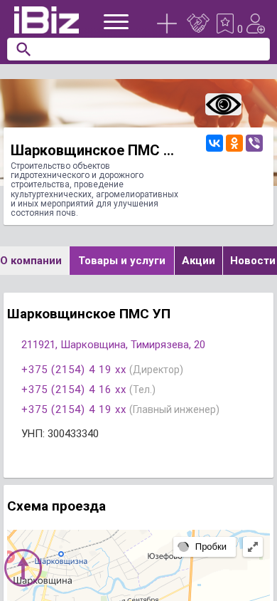 | AI-анализ | This website is for the company Шарковщинское ПМС УП, located in Шарковщина, Belarus, at the address Тимирязева, 20. The company specializes in construction of hydrotechnical and roadbuilding objects, as well as in conducting cultural-technical, agromeiliorative, and other improvement measures for soil condition. The contact information provided includes the phone numbers +375 (2154) 4 19 xx (Director), +375 (2154) 4 16 xx (Tel.), and +375 (2154) 4 19 xx (Chief Engineer), as well as the Unified State Register number 300433340 and the map location. The company operates from Monday to Friday, 09 |