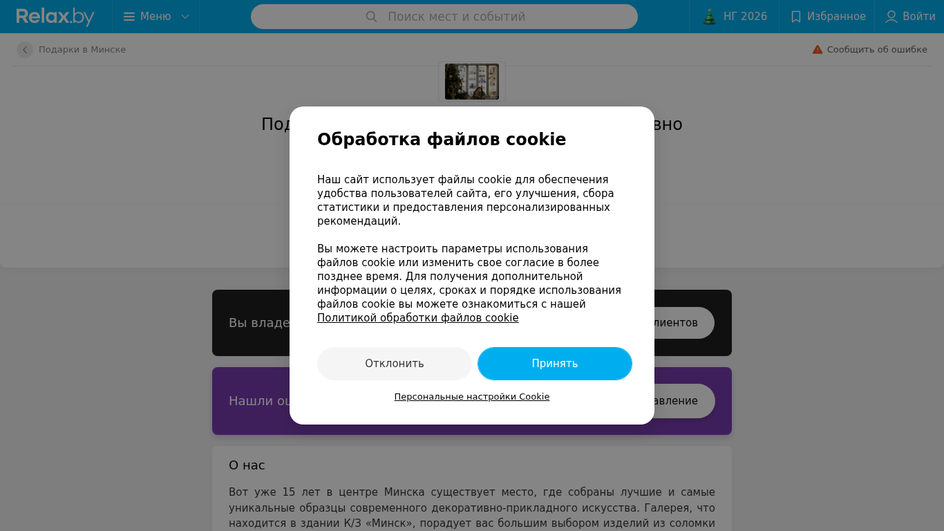 | SEO-описание | Подарки Галерея национального декоративно прикладного искусства в Минске – отзывы, телефоны, график работы и карта проезда на Relax.by |