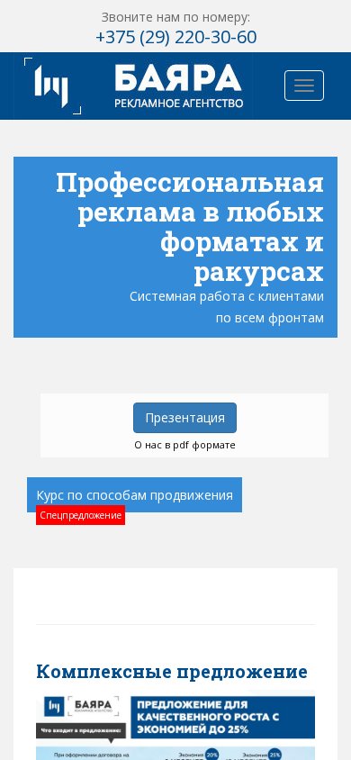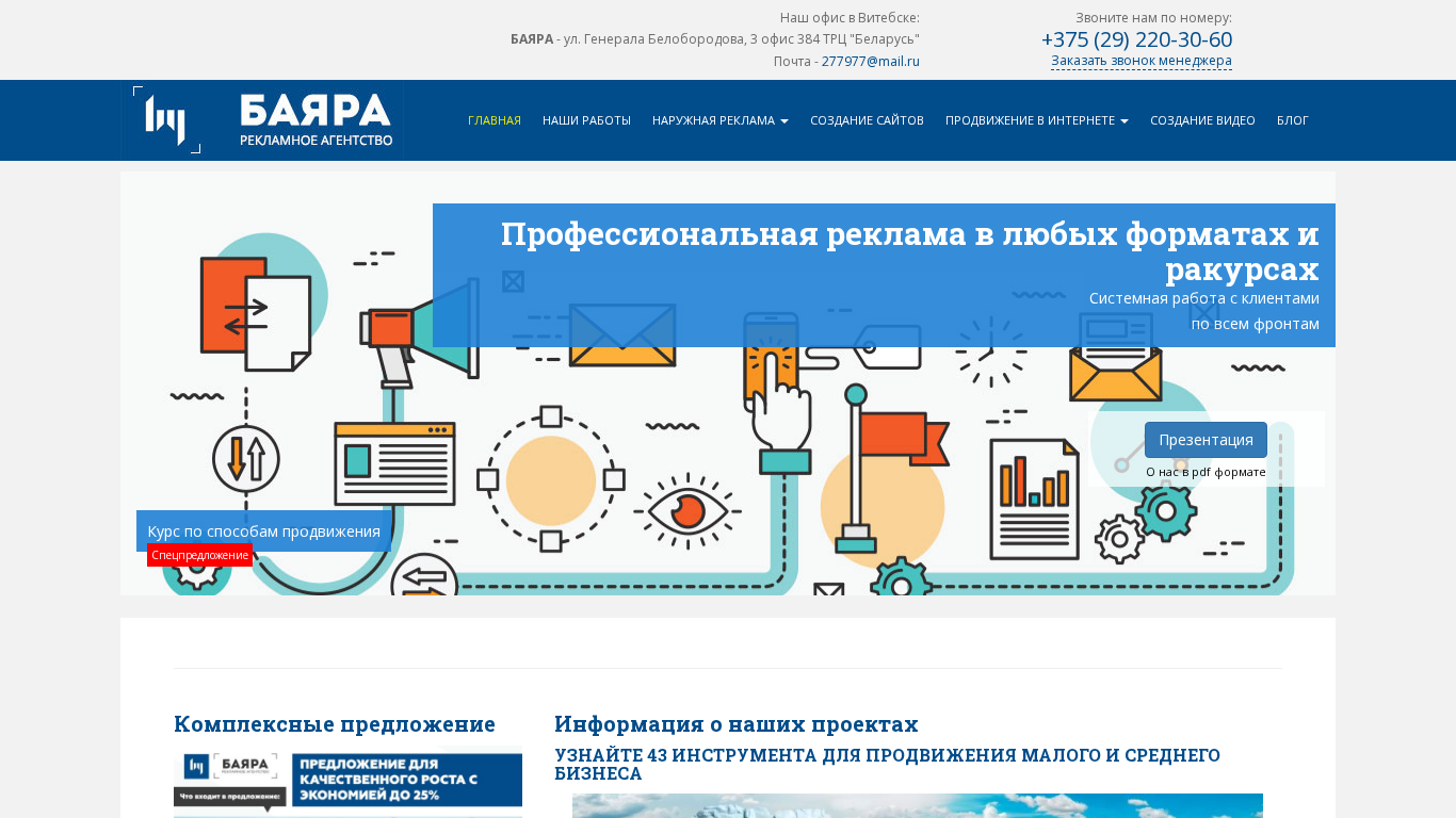 | Название / Заголовок | Профессиональная реклама в любых форматах и ракурсах | БАЯРА |