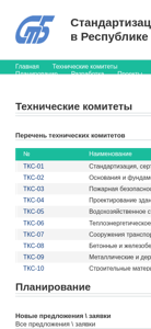 | Название / Заголовок | Главная - Технические комитеты РБ |