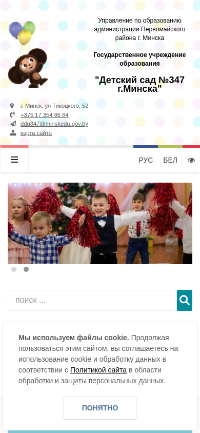 | Адрес | электронной почты, ddu347@minskedu.gov.by, почтовый адрес:, г. Минск, ул. Тикоцкого, 52 |