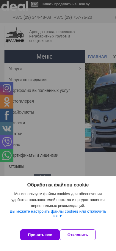 | Название / Заголовок | Аренда раздвижных низкорамных тралов - перевозка негабаритных грузов и спецтехники от ООО "Драглайн" |
