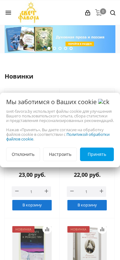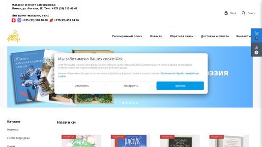 | AI-анализ | --- This website is the online store "Свет Фавора" (Favor Light) based in Minsk, Belarus. The shop offers a variety of religious items including icons, books, and liturgical items. Customers can shop in person at the store located on Fogely Street or online with delivery and phone options available. Product categories include new items, books with discounts up to 50%, and sections for Easter, children's education, and more. The site also features a blog, a calendar, and encyclopedias. The store's contact information is provided, including phone numbers for the physical and online store. |