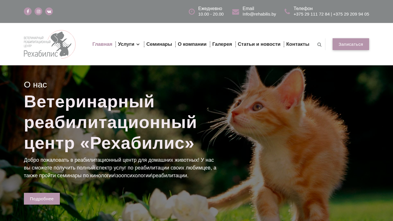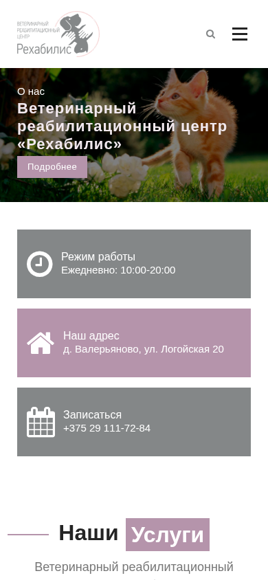 | SEO-описание | Реабилитационный центр для домашних животных в Минске. Полный спектр услуг по реабилитации животных, а также семинары по кинологии\зоопсихологии\реабилитации. |