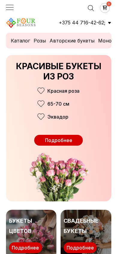 | SEO-описание | Широкий выбор цветов, букетов, подарочных корзин и букетов невесты — купите цветы в Минске для любого повода. |