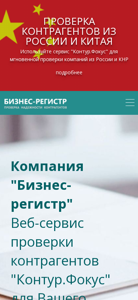 | AI-анализ | This website is a business registration and check service based in Belarus, specifically in Minsk. The title of the site is "Контур Фокус" and it offers services for checking companies, contractors, and partners in Belarus. Users can connect to the "Контур.Фокус" service for company verification in Belarus. Additionally, there is a service called "Контур.Призма" for checking companies against sanctions. The company responsible for the website is ООО "БИЗНЕС-РЕГИСТР" located in Minsk. Keywords associated with the site include "СКБ КОНТУР", "Контур.Фокус", "Контур-Фокус", "Контур.Призма", "компаний", "контраген |