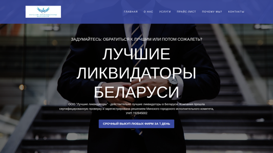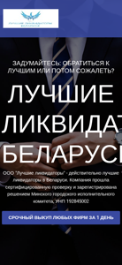 | SEO-описание | Лучшие ликвидаторы - лучшие ликвидаторы в Беларуси. Ликвидация и Банкротство ООО, ЧУП, ИП, ЗАЛ, ОАО. Продажа бизнеса и покупка фирм с долгами. Срочная ликвидация. Реорганизация. |