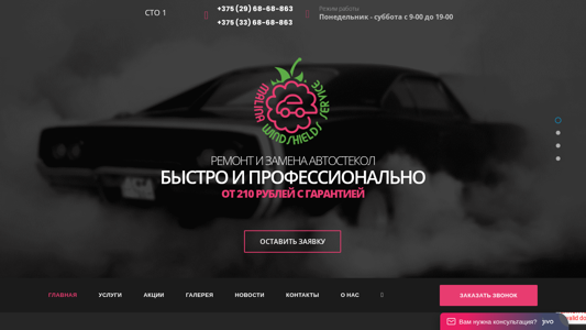 | AI-анализ | The web project "Malinas Services" is a car glass repair and replacement business based in Minsk, Belarus. The website offers quick and professional repair or replacement of car windshields and side windows, as well as glass installation services. Customers can leave a request for a quote on the website or contact the business via phone at +375 (29) 68-68-863 or +375 (33) 68-68-863. The business operates Monday to Saturday from 9am to 7pm. Besides car glass services, Malinas Services also offers air conditioning refills and car headlight polishing. The website features a gallery, news section, and contact information. Malinas Services has been in the business of repairing and replacing car glass for over 5 years, and the team is qualified to handle various glass- |
