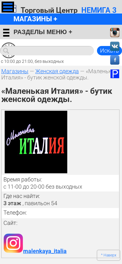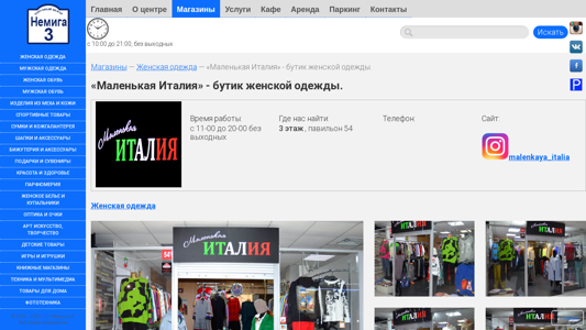 Название / Заголовок«Маленькая Италия» - бутик женской одежды :: Торговый Центр НЕМИГА 3, г. Минск
