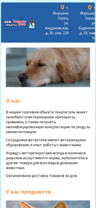 | AI-анализ | This website is a veterinary pharmacy located in Mar'ina Gorka, Belarus, with two physical branches: one at Andreevskaya Street, No. 20, flat No. 220, and the other at Budenogo Street, No. 18, flat No. 54. The website offers veterinary medicines, vaccinations, and expert consultation services for pet care. The staff of the pharmacy have veterinary education and experience working with animals. In addition to veterinary medicines, the store keeps a wide range of pet food, fillers, and other accessories for various types of domestic animals, including cats, dogs, rodents, birds, and fish. The store also offers home delivery of goods. The website features categories for products for cats, dogs, rodents, birds, and fish, as well as a section for veterinary medicines. A discount system operates |