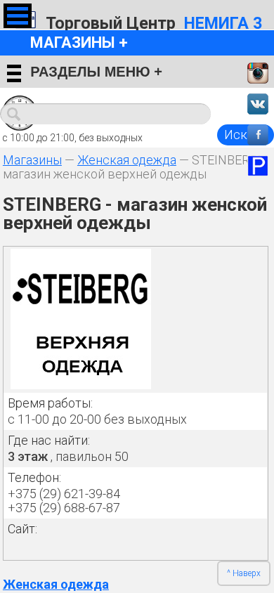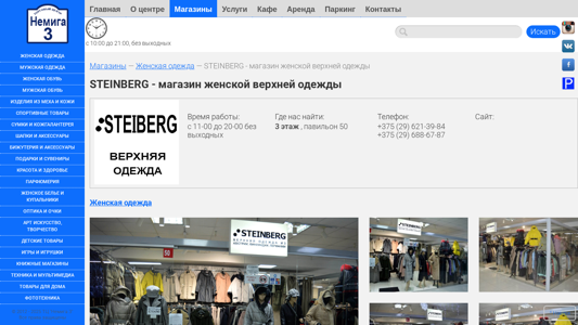 | Название / Заголовок | STEINBERG - магазин женской верхней одежды из Австрии, Финляндии, Германии :: Торговый Центр НЕМИГА 3. г.Минск |