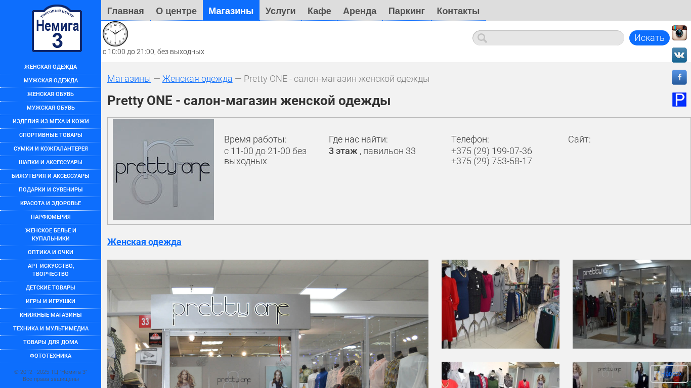 | Название / Заголовок | Pretty ONE - салон-магазин женской одежды :: Торговый Центр НЕМИГА 3, г. Минск |