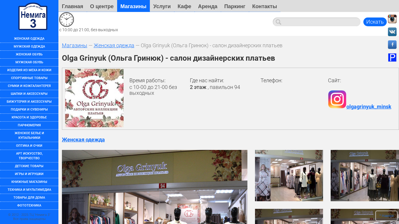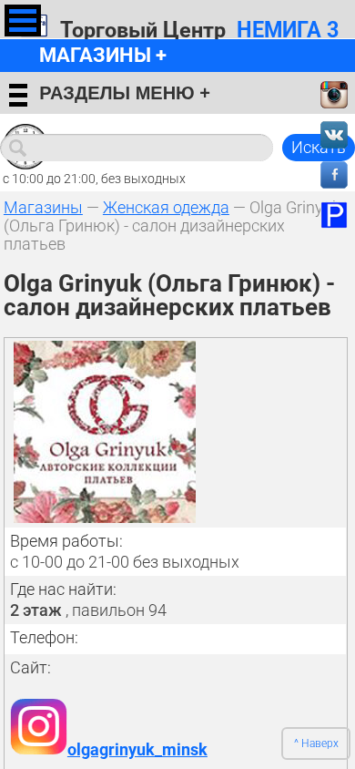 | Название / Заголовок | Olga Grinyuk (Ольга Гринюк) - салон дизайнерских платьев :: Торговый Центр НЕМИГА 3, г. Минск |