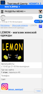 | Название / Заголовок | LEMON - магазин женской одежды :: Торговый Центр НЕМИГА 3. г.Минск |