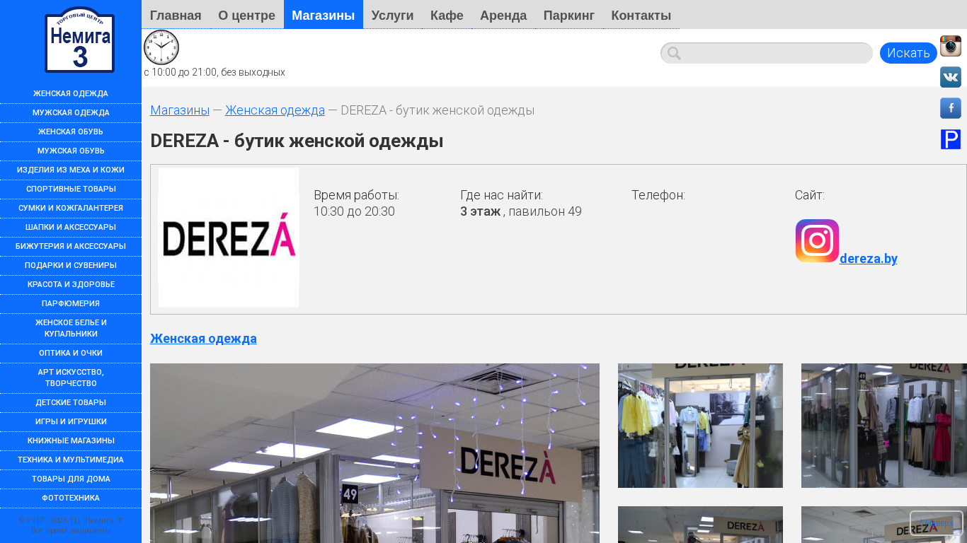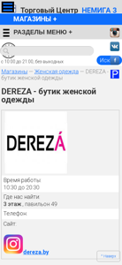 | Название / Заголовок | DEREZA (Дереза) - магазин женской одежды :: Торговый Центр Немига 3, г. Минск |