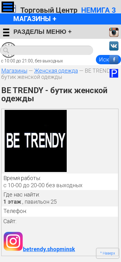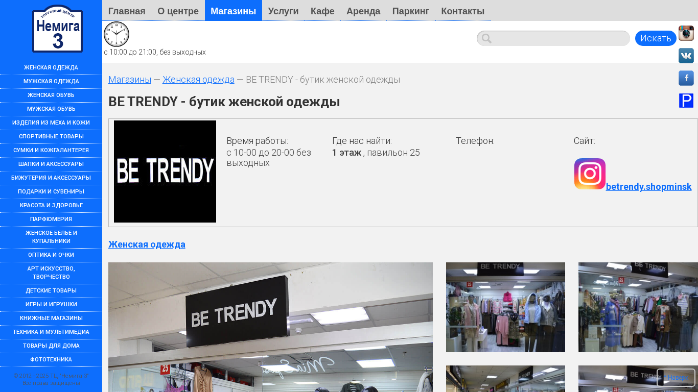 | Название / Заголовок | BE TRENDY - бутик женской одежды :: Торговый Центр НЕМИГА 3, г. Минск |