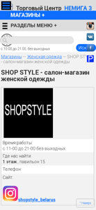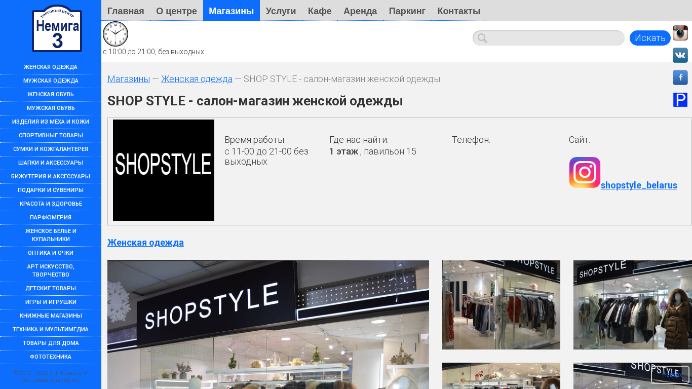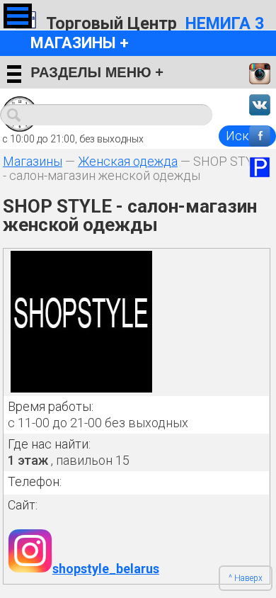 | Название / Заголовок | SHOP STYLE - салон-магазин женской одежды :: Торговый Центр НЕМИГА 3, г. Минск |