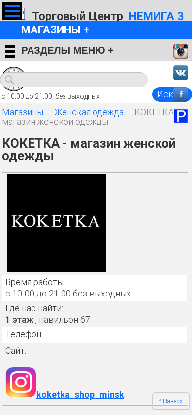 Название / ЗаголовокKOKETKA - магазин женской одежды :: Торговый Центр НЕМИГА 3, г. Минск