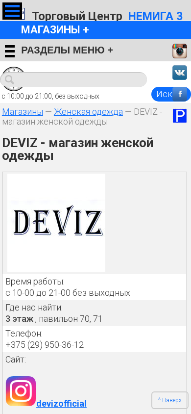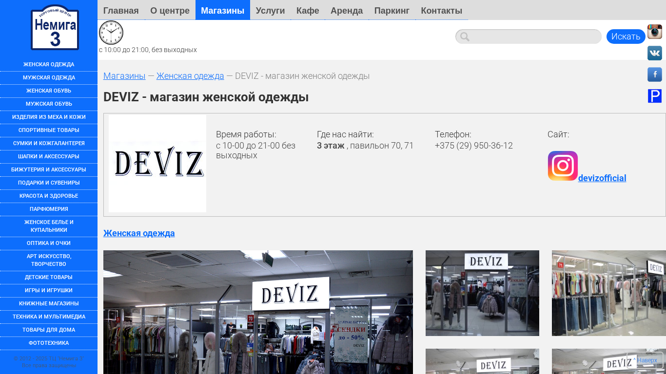 Название / ЗаголовокDEVIZ - магазин женской одежды :: Торговый Центр НЕМИГА 3, г. Минск