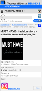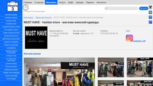 | Название / Заголовок | MUST HAVE - fashion store - магазин женской одежды :: Торговый Центр НЕМИГА 3, г. Минск |