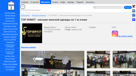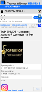 | Название / Заголовок | TOP SHMOT - магазин женской одежды :: Торговый Центр НЕМИГА 3, г. Минск |