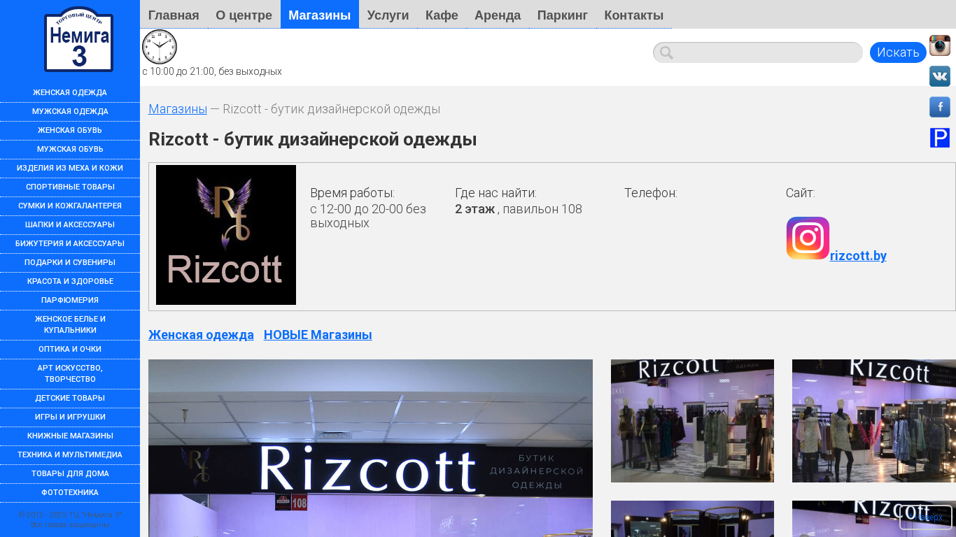 | Название / Заголовок | RIZCOTT - бутик дизайнерской женской одежды :: Торговый Центр НЕМИГА 3, г. Минск |