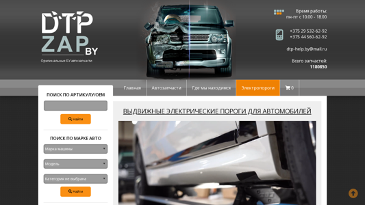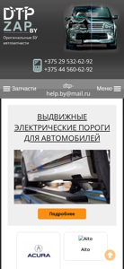 | AI-анализ | The portal is an e-commerce website selling used auto parts in Minsk, Belarus. It offers a wide selection of parts from European auto wrecking yards, with over 1.1 million available. Customers can purchase in-stock items and place orders for custom parts. Consultation and warranty are provided. The website operates from Monday to Friday, 10:00-18:00. Contact information includes phone numbers +375 29 532-62-92 and +375 44 560-62-92, and email address dtp-help.by@mail.ru. The site features a search function for parts by article number or OEM, as well as a dropdown menu to browse parts by make, model, and wheel diameter. It also offers electric gate parts for various automobiles. The site is currently |