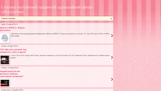 | AI-анализ | This online resource is a blog for educators in the field of arts education, called 'Mastaki'. The blog provides information on various educational topics, including conferences, TED talks, and personal development for teachers. The most recent posts cover 'School in Focus. Focuses for Schools' (May 2023), 'TED talks for teachers. How to turn stress into a friend?' (March 2021), 'Andrey Kuropatov. How to raise a happy child?' (December 2020), and 'X Republican Christmas Festival of Pedagogical Mastery' (October 2020). The blog is hosted on the Blogger platform and the domain is '.by'. |