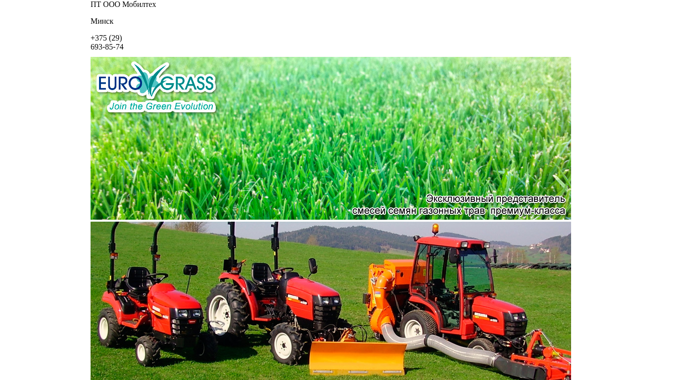| SEO-описание | ПТ ООО «Мобилтех» уже более 10 лет успешно поставляет на белорусский рынок профессиональные смеси газонных трав и является эксклюзивным представителем фирмы EURO GRASS (Германия) на территории Республики Беларусь. |