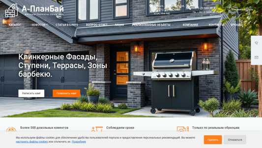 | AI-анализ | The portal is a catalog for A-PlanBai, a showroom for German clinker A-PlanBai located in Minsk, at the "Zamok Home" shopping center. The website offers clinker brick, tile for facades and floors, clinker steps, and clinker paving stones. Keywords include sales of clinker tile, clinker brick, clinker paving stones, clinker steps, and tile for facades. The top words are grill, klinkerna, plytka, oblisovka, kirpich, klinkernaya, bbq, nazad, kirpicha, ruchnaya, formovki, klinkernie, 375, brukschatka, plitkom, facadov, servis, plitki, studeni, n |