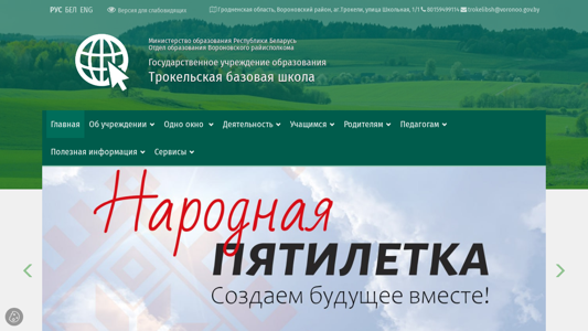 | AI-анализ | This online resource is the official website of Trokel'a Base School, located in Belarus. The title of the website is "Трокельская базовая школа" and it contains information about the school, including news and contacts. Keywords associated with the website include 'school', 'education in Belarus', 'vacation', 'November', and 'Trokel'a'. The top words on the website are 'more', '2025', 'school', 'education', 'Belarus', 'vacation', 'Janska', 'November', 'Trokel'a', and 'base'. The website is available in Russian, Belarusian, English, and a version for the visually impaired. It includes a map and information about work and projects. The domain of the website is trokeli.voronoo.gov.by |