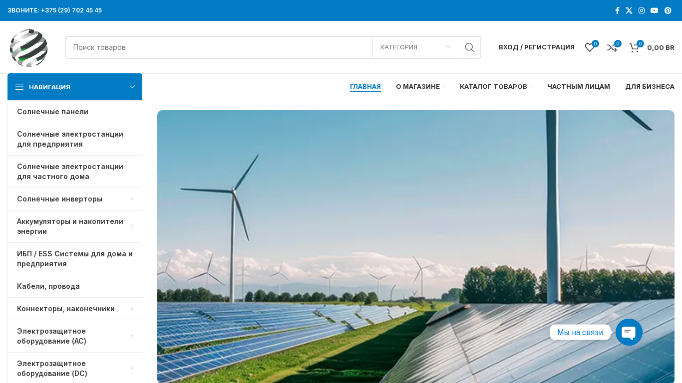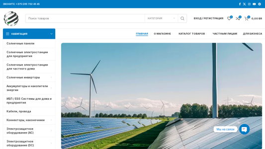 | AI-анализ | The web project "Energy Frame" is an e-commerce platform selling solar panels, accumulators, inverters, and ready-made solar energy stations for homes, businesses, campers, or cottages in Belarus, specifically located in Minsk. The site offers various types of solar panels, solar energy stations for businesses and private homes, inverters, high and low voltage accumulators, charging systems, cables, connectors, and protective equipment. The site also features a search function, a menu, and a catalog of products. The domain is eenergy.by. |