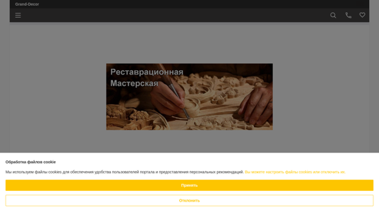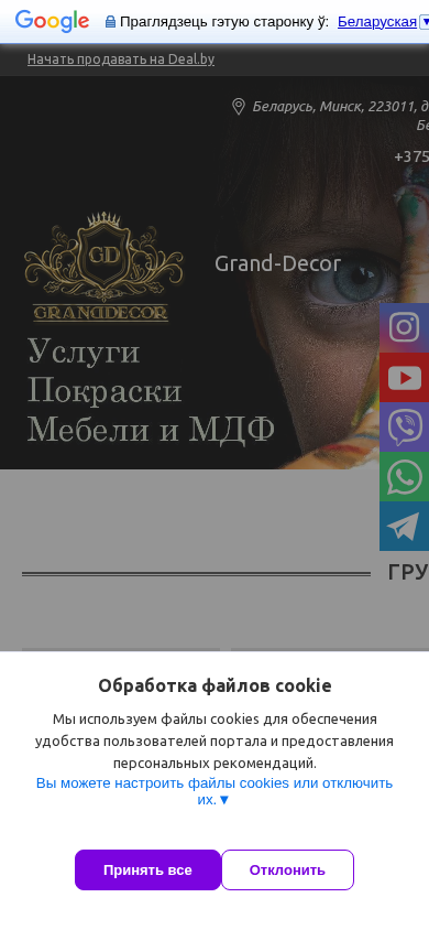 | AI-анализ | language: ru The web project "Grand Decor" is a Russian-language website dedicated to furniture restoration and sales in Minsk, Belarus. The site offers contacts for the company, including phone numbers for Viber, WhatsApp, and Telegram. Key service categories include the restoration of wooden doors, study chairs, and tables, as well as the sale of new and antique furniture. The site features a catalog of various furniture groups, including kitchens, doors, stairs, tables, chairs, cabinets, and more. Visitors can also view a showcase of new items and restoration services. The site is built on the Deal.by platform and includes a contact section, delivery and payment information, and a privacy policy. The company is registered in Belarus and located in Minsk. |
