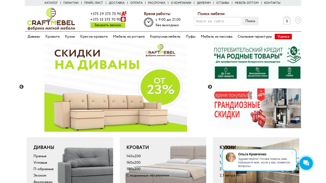 | SEO-описание | Мягкая мебель от производителя Крафт мебель по оптовым ценам с доставкой по Беларуси. Низкие цены и большой ассортимент на выгодных условиях. |