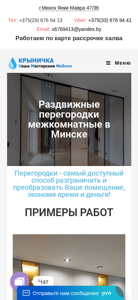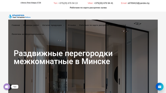 | AI-анализ | This online resource, "Межкомнатные перегородки для дома и офиса - PEREGORODKIPLUS.BY," is dedicated to providing partition solutions for both residential and office spaces. The title accurately reflects the content of the website, with the words "межкомнатные перегородки" (interroom partitions) appearing 14 times in the description. The website offers various types of partitions including sliding doors, and production is mentioned several times. The contact information for the company, which is based in Minsk, Belarus, is provided, including a phone number, Viber number, and email address. The website also mentions a payment plan called "халва," which is likely a financing option. The website includes a catalog of products, examples of completed work, and customer reviews. The language used on the website is Russian, and the domain is |